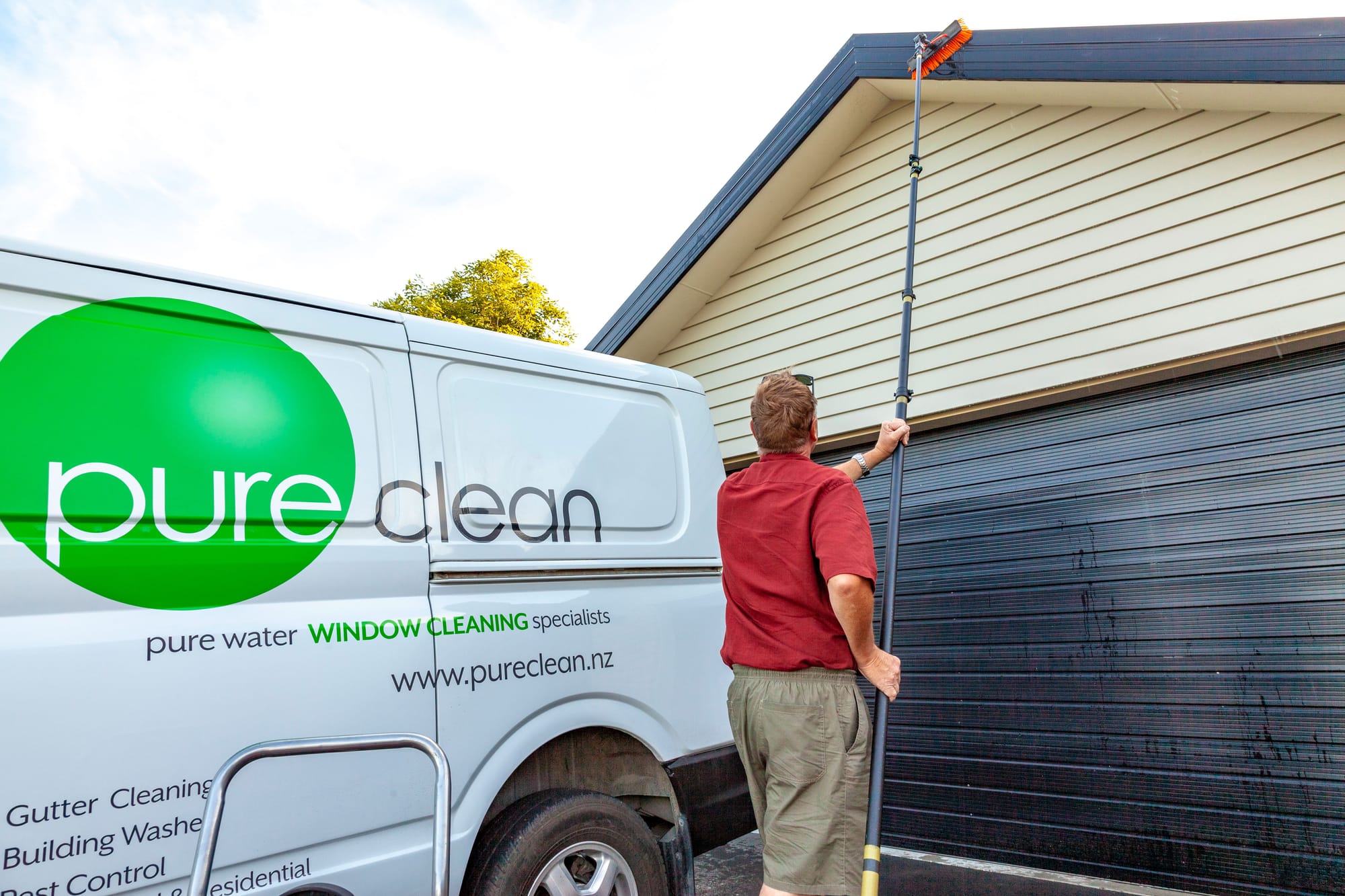 Pure Clean services hotels, offices, schools, retail and private residences. Our process ensures the cleanest glass even on multistory buildings without the use of detergents or chemicals making it completely harmless to your property, garden and the environment. It also offers the most economic pricing of contract work, made possible due to using predominantly a water fed brush and pole method. This eliminates the need for abseiling and possibly expensive access measures to the windows and building as well as the removal of work safe issues with ladders etc and any mitigation necessary.